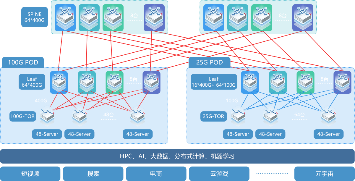 ½ÓÄÉENA×éÍø£¬£¬£¬£¬£¬£¬ÊµÏÖ´Ó25G/100G¼Ü¹¹100G/400G¼Ü¹¹µÄƽ»¬¹ý¶ÉºÍµ¯ÐÔÀ©Õ¹£¬£¬£¬£¬£¬£¬µ¥POD·þÎñÆ÷2K+£¬£¬£¬£¬£¬£¬µ¥¼¯Èº·þÎñÆ÷5W+
