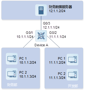 DeviceA(config-if-GigabitEthernet 0/3)# ip access-group 1 out